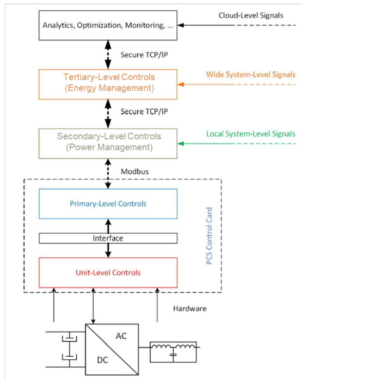 一級(jí)控制在功率設(shè)備自身運(yùn)行的控制功能,一般嵌入在逆變器固件或OEM的控制器中。這些控制功能通常緊密、快速地整合在儲(chǔ)能資產(chǎn)的充、放電能量轉(zhuǎn)換過程。