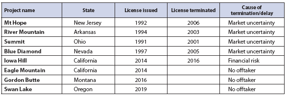人們普遍認(rèn)為選址是美國(guó)部署抽水蓄能設(shè)施的主要障礙是一種誤解。美國(guó)在技術(shù)上可行的站點(diǎn)數(shù)量眾多,并且有許多選址/許可流程。在過(guò)去的20年已經(jīng)規(guī)劃建設(shè)一些抽水蓄能設(shè)施。然而,由于未來(lái)需求和金融風(fēng)險(xiǎn)的不確定性,幾乎所有這些項(xiàng)目都被取消了。在競(jìng)爭(zhēng)激烈的電力市場(chǎng)中,新建抽水蓄能設(shè)施的可行商業(yè)模式尚未得到證實(shí)。