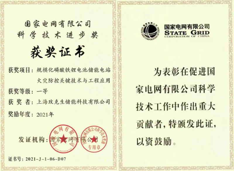 國(guó)家電網(wǎng)有限公司2021年科學(xué)技術(shù)進(jìn)步獎(jiǎng)一等獎(jiǎng)獲獎(jiǎng)證書(shū)