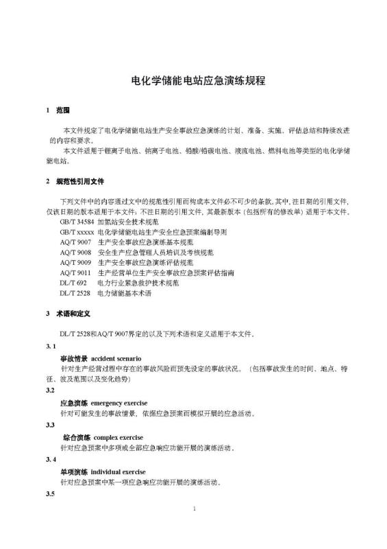 國(guó)家標(biāo)準(zhǔn)《電化學(xué)儲(chǔ)能電站應(yīng)急演練規(guī)程》征求意見
