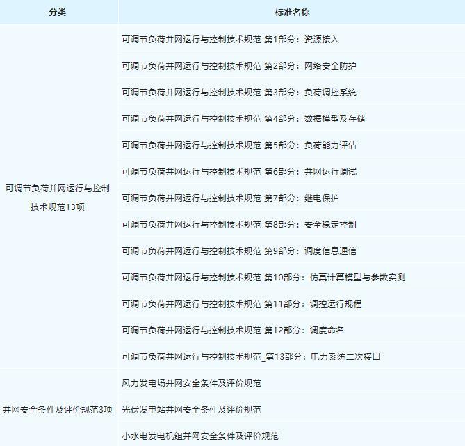 可調(diào)節(jié)負荷并網(wǎng)運行與控制技術(shù)規(guī)范系列13項電力行業(yè)標(biāo)準全面覆蓋并規(guī)范可控負荷資源參與電網(wǎng)調(diào)控業(yè)務(wù)各環(huán)節(jié),確保可控負荷資源參與調(diào)控的安全性和規(guī)范性,提升了負荷調(diào)節(jié)資源的調(diào)控能力。風(fēng)電、光伏、小水電并網(wǎng)安全評估3項行業(yè)標(biāo)準進一步明確了新能源電站并網(wǎng)的安全性要求,為電源結(jié)構(gòu)轉(zhuǎn)型提供標(biāo)準支撐。