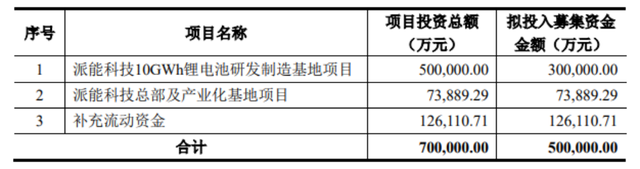 其中,派能科技10GWh鋰電池研發(fā)制造基地項(xiàng)目擬在安徽省合肥市肥西縣投資建設(shè)年產(chǎn)10GWh電芯和系統(tǒng)組裝生產(chǎn)線及相關(guān)配套設(shè)施。本項(xiàng)目投資總額為50億元,擬投入募集資金30億元,募集資金全部用于項(xiàng)目建設(shè)工程費(fèi)用等資本性支出。