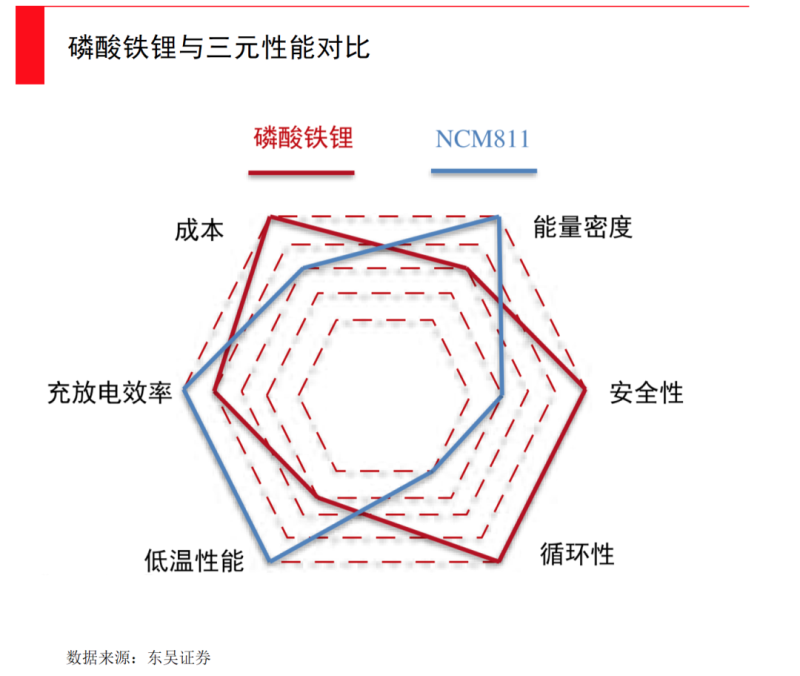 磷酸鐵鋰正極材料的分解溫度,高達(dá)700℃,非常安全;且其原材料不含金屬鈷,這就讓成本低于三元近20%。