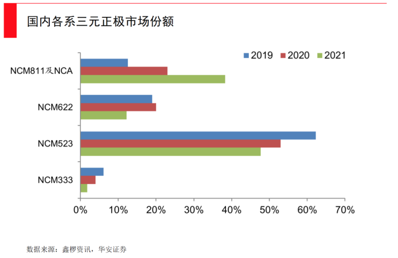 在車企和電池廠商的推動(dòng)下,2020年成為了高鎳元年,寧德時(shí)代高鎳電池開始起量,而容百作為正極材料供應(yīng)商,綁定了寧德成為該領(lǐng)域絕對(duì)龍頭。隨著高鎳技術(shù)越來越成熟,2021年高鎳在寧德時(shí)代的總裝機(jī)量中,占比提升至30%。