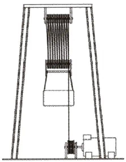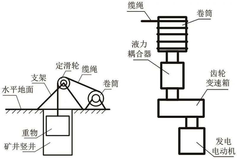 葛洲壩中科儲(chǔ)能技術(shù)公司2018年提出了利用廢棄礦井和纜繩提升重物的方案(圖13),解決了廢棄礦井長(zhǎng)時(shí)間不使用的風(fēng)險(xiǎn)和浪費(fèi)問題,也降低了重力儲(chǔ)能系統(tǒng)的建設(shè)成本。但深井吊機(jī)的載重能力有限,重物和機(jī)組受井口尺寸限制,長(zhǎng)繩索提升重物的形變、旋轉(zhuǎn)擺動(dòng)問題仍待優(yōu)化,廢棄礦井資源有限,選址不夠靈活,還有瓦斯泄漏等安全隱患。