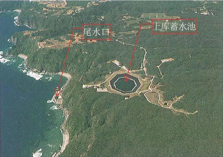 由于淡水抽水蓄能電站受自然環(huán)境、氣候條件、地形地貌等限制,選址日益困難,而我國沿海經(jīng)濟(jì)發(fā)達(dá)地區(qū)電力負(fù)荷日益增大,因此《水電發(fā)展“十三五”規(guī)劃》提出要推動(dòng)建設(shè)海水抽水蓄能電站,解決新能源消納、間歇性等問題。常規(guī)海水抽儲(chǔ)是在海邊建設(shè)上水庫,將海洋作為下水庫,發(fā)電時(shí)海水通過水泵水輪機(jī)組從上庫排往海洋,將海水重力勢(shì)能轉(zhuǎn)化為電能,儲(chǔ)能時(shí)將海水抽至上水庫,以海水重力勢(shì)能形式存儲(chǔ)。排水型海水抽儲(chǔ)是在海灣修筑水壩,將壩內(nèi)水庫作為下庫,海洋作為上庫,利用水壩內(nèi)外海水落差進(jìn)行儲(chǔ)能和發(fā)電。日本沖繩在1999年建設(shè)了世界首座海水抽水蓄能電站(圖1),可蓄水564000 m3,有效落差136 m,最大出力30 MW。愛爾蘭、智利等國也開始部署海水抽儲(chǔ)的相關(guān)研究工作。我國已經(jīng)完成了海水抽儲(chǔ)的資源普查工作,但還未有海水抽儲(chǔ)建設(shè)項(xiàng)目。海水抽水蓄能電站工程復(fù)雜,海水腐蝕、海洋生物附著會(huì)破壞設(shè)備,影響電站性能,沿海地區(qū)自然災(zāi)害頻繁,海水還會(huì)污染陸地土壤和地下水,因此需要嚴(yán)格的工程防護(hù)和評(píng)估檢查。