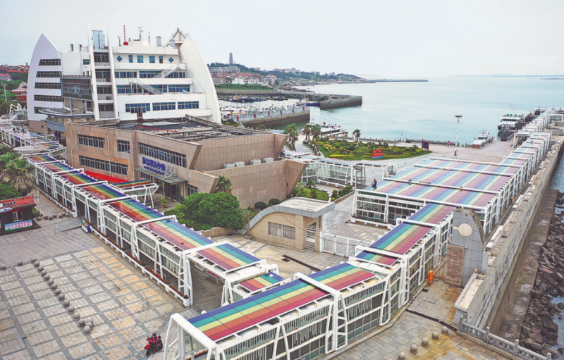從湄洲島碼頭下船,游客們驚喜地發(fā)現(xiàn),碼頭風(fēng)雨廊被色彩鮮艷的“彩虹”光伏板裝扮。這是剛剛建成投用的風(fēng)雨廊光伏建筑一體化(BIPV)項目,實現(xiàn)了光伏發(fā)電玻璃與碼頭標志性建筑風(fēng)雨廊有機融合,與媽祖彩虹路遙相呼應(yīng),是建筑、技術(shù)和美學(xué)的完美融合。
