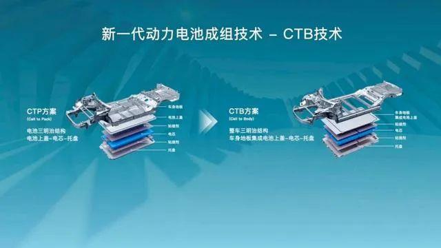今年的5月20日,比亞迪發(fā)布CTB(Cell To Body)技術(shù),該技術(shù)將電池包上蓋與傳統(tǒng)結(jié)構(gòu)的車(chē)身底板集成,構(gòu)成上蓋、“刀片電池”、托盤(pán)的整車(chē)三明治結(jié)構(gòu)。動(dòng)力電池的系統(tǒng)體積利用率提升至66%,系統(tǒng)能量密度提升了10%。