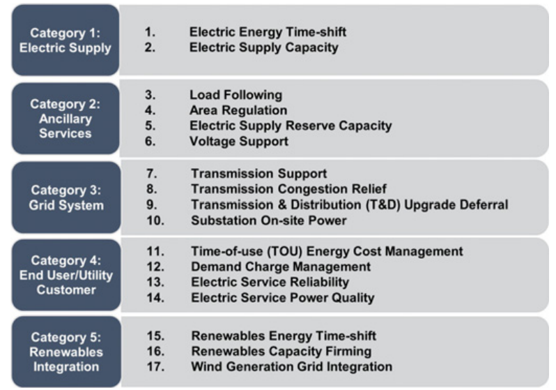 圖 1.1 儲(chǔ)能提供的多達(dá) 17 項(xiàng)服務(wù)
