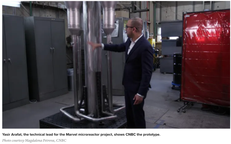 阿拉法特告訴CNBC,該項目被稱為Marvel反應堆,是“微反應堆應用研究驗證與評估”( Microreactor Applications Research Validation and Evaluation)項目名稱的首字母縮略詞,目標是在2023年12月前運行首堆,使其成為美國第一個先進的微反應堆。