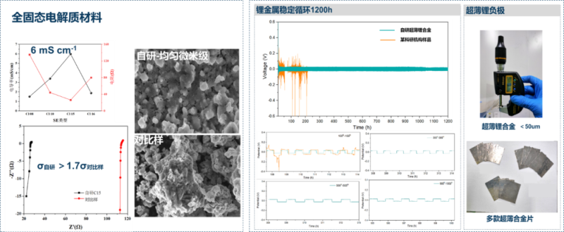 以上自研的固態(tài)電解質(zhì)、正極材料、超薄鋰合金負(fù)極研究進(jìn)展將促進(jìn)高能量密度電池技術(shù)發(fā)展,并帶來500Wh/kg高能量密度全固態(tài)電池的產(chǎn)業(yè)化可能性。