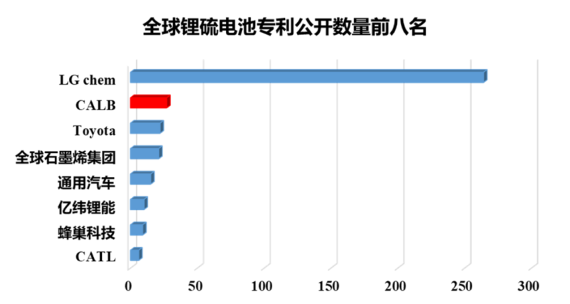 目前,國內(nèi)外在鋰硫電池領(lǐng)域的專利申請(qǐng)持續(xù)升溫,而中創(chuàng)新航在鋰硫電池領(lǐng)域的專利申請(qǐng)數(shù)量也快速增長,數(shù)據(jù)顯示,在全球鋰硫電池專利公開數(shù)量排名中,中創(chuàng)新航位居第二,僅次于LG化學(xué)。