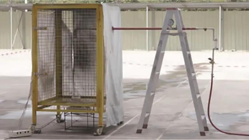 滅火系統(tǒng)作為鋰離子電池智能消防體系中的最后一道防線必不可少,關(guān)于這一方向的研究主要集中在噴淋系統(tǒng)的設(shè)計以及特效滅火劑的研發(fā)兩方面。為了能夠驗證所設(shè)計的滅火系統(tǒng)是否有效,便要求研究人員在測試平臺中搭載滅火系統(tǒng)開展實驗。除了測試滅火方案是否可行以外,常規(guī)熱失控實驗中為安全保障也會搭載滅火系統(tǒng),一旦出現(xiàn)了意外情況可以及時干預(yù),避免造成人員財產(chǎn)損失。