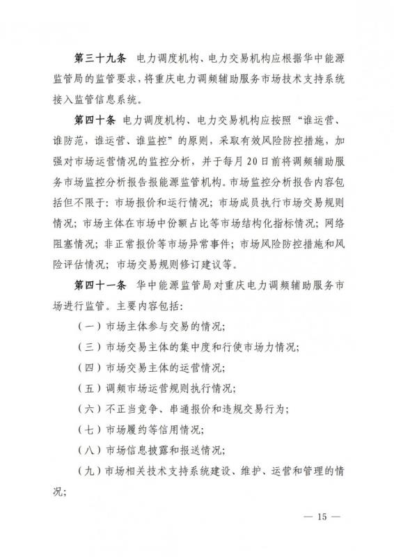 華中能源監(jiān)管局關(guān)于《重慶電力調(diào)頻輔助服務(wù)市場(chǎng)交易規(guī)則(征求意見(jiàn)稿)》公開征求意見(jiàn)的通知