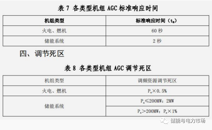 K3反應(yīng)了調(diào)節(jié)資源在接受到AGC指令后,有效做出響應(yīng)的時(shí)間。從公式上看,最大取值為1。新版規(guī)則對(duì)儲(chǔ)能系統(tǒng)的標(biāo)準(zhǔn)響應(yīng)時(shí)間也做出了規(guī)定。