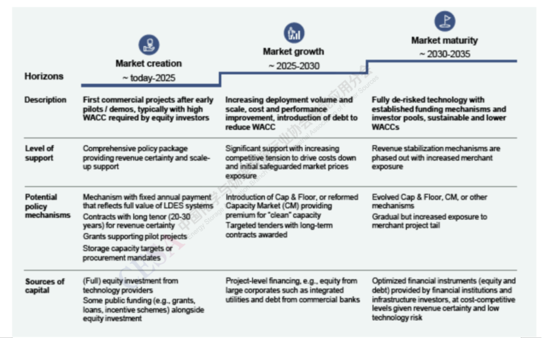 圖4 政策干預(yù)水平將隨著長時(shí)儲(chǔ)能(LDES市場的成熟而變化