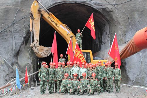 電站引水隧洞施工支洞,全長944米,地質(zhì)條件復(fù)雜,交通條件極差,與上下庫連接公路工程形成立體交叉作業(yè),施工難度大、安全風(fēng)險(xiǎn)高、工期時(shí)間緊。開工以來,承擔(dān)施工任務(wù)的武警水電二總隊(duì)官兵認(rèn)真貫徹落實(shí)工程施工要求,科學(xué)編排施組,合理配置資源,精心組織施工。針對施工中遇到的各種復(fù)雜問題,不等不靠,迅速組織技術(shù)人員現(xiàn)場攻關(guān),不斷優(yōu)化調(diào)整施工方案。針對高邊坡施工危險(xiǎn)性大等特點(diǎn),突出安全防控重點(diǎn),實(shí)現(xiàn)了“安全、質(zhì)量、進(jìn)度”三大控制目標(biāo),確保了施工快速有序推進(jìn)。全體參戰(zhàn)官兵發(fā)揚(yáng)特別能吃苦,特別能戰(zhàn)斗,特別能忍耐,特別能奉獻(xiàn)的光榮傳統(tǒng),頑強(qiáng)拼搏,克服種種困難,提前8天勝利實(shí)現(xiàn)施工支洞貫通目標(biāo),且隧洞光面爆破效果顯著,殘孔率高。1號支洞順利貫通為引水隧洞全線貫通打下了堅(jiān)實(shí)的基礎(chǔ)。