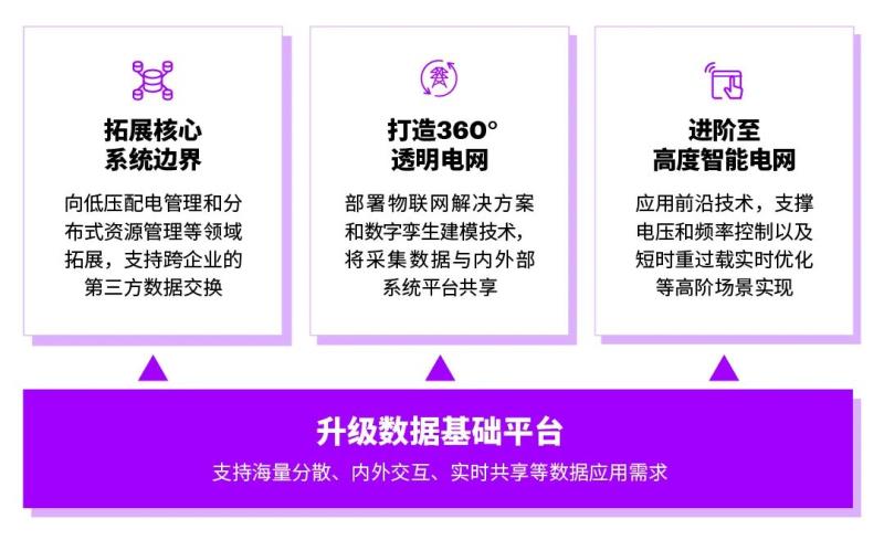 數(shù)據(jù)是未來能源系統(tǒng)的基石,電網(wǎng)企業(yè)將部署更多數(shù)據(jù)密集型流程,以支持面向新型電力系統(tǒng)的業(yè)務(wù)創(chuàng)新。埃森哲建議結(jié)合自身實(shí)際及監(jiān)管要求,依循升級數(shù)據(jù)基礎(chǔ)平臺、拓展核心系統(tǒng)邊界、打造360°透明電網(wǎng)、進(jìn)階至高度智能電網(wǎng)的數(shù)字化演進(jìn)路線,賦能新型電力系統(tǒng)建設(shè)。