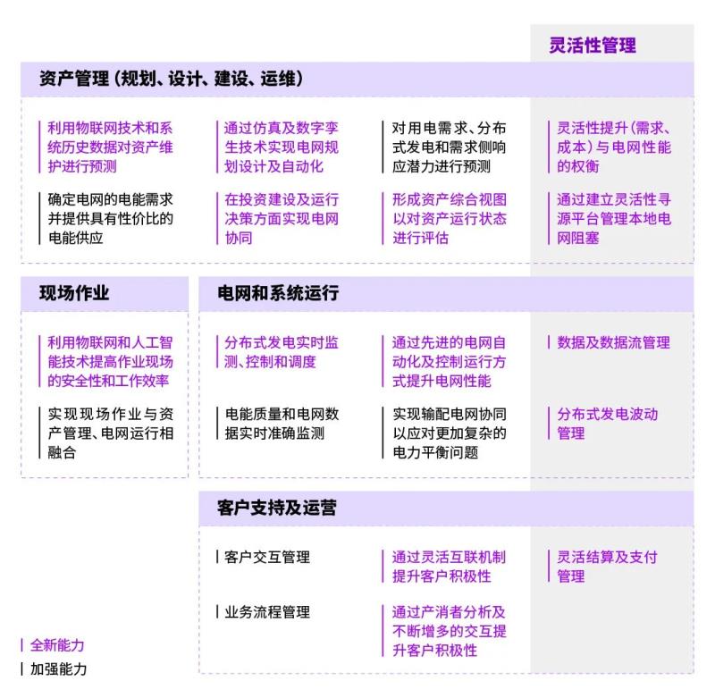 硬實(shí)力是系統(tǒng)升級的根本保障。埃森哲建議電網(wǎng)企業(yè)可從“源、網(wǎng)、荷、儲、市場”五大核心要素入手,瞄準(zhǔn)“新一代電網(wǎng)”的建設(shè)目標(biāo),系統(tǒng)梳理提升舉措,強(qiáng)化電力系統(tǒng)的硬件基礎(chǔ)。