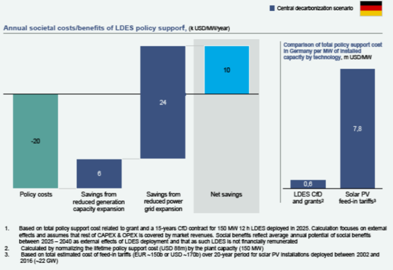 為長(zhǎng)時(shí)儲(chǔ)能(LDES)簽訂長(zhǎng)期定價(jià)支持合同可以減少天然氣價(jià)格波動(dòng)的風(fēng)險(xiǎn),因?yàn)槌^(guò)上限或差價(jià)合約(CfD)執(zhí)行價(jià)格的收入將返回資金池,從而確保政策和監(jiān)管支持的社會(huì)價(jià)值。