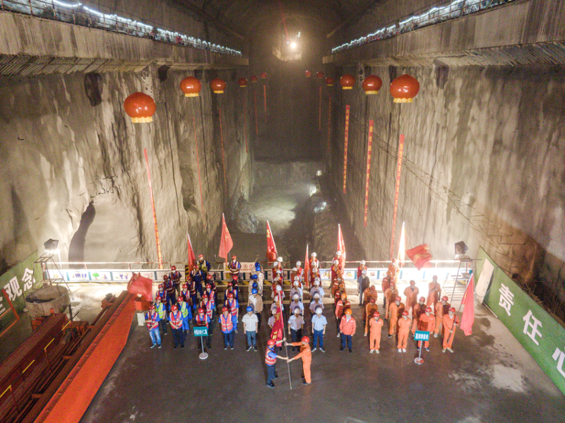 各參建單位在廠房安裝場(chǎng)舉行電站地下廠房及主變洞交面儀式