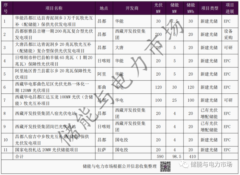 表:2022年西藏已進(jìn)入實(shí)施階段的光儲(chǔ)項(xiàng)目