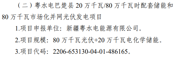 資料顯示,新疆粵水電能源近年動(dòng)作頻頻,2020年該公司在喀什地區(qū)投資建設(shè)的三個(gè)20MW光伏項(xiàng)目已全部并網(wǎng)發(fā)電。2021年又投建新疆巴楚縣150MW光儲(chǔ)一體化項(xiàng)目,占地面積近300公頃,總投資約7.3億元。