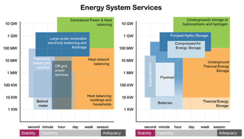 (6)提供不同持續(xù)時間的儲能服務(日內、日間和季節(jié)性),有助于在較低發(fā)電量(例如風力不足或陽光不足的時期)或較高需求(例如供暖需求上升時的冬天)的較長時期內平衡電力系統(tǒng)。