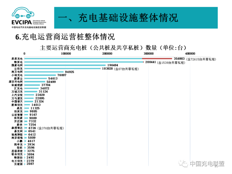 3、公共充電基礎(chǔ)設(shè)施運(yùn)營商運(yùn)行情況,截止到2022年6月,全國充電運(yùn)營企業(yè)所運(yùn)營充電樁數(shù)量TOP15,分別為:特來電運(yùn)營28.7萬臺、星星充電運(yùn)營28.4萬臺、國家電網(wǎng)運(yùn)營19.6萬臺、云快充運(yùn)營18.4萬臺、南方電網(wǎng)運(yùn)營9.5萬臺、小桔充電運(yùn)營7.6萬臺、蔚景云運(yùn)營5.5萬臺、深圳車電網(wǎng)運(yùn)營5.0萬臺、依威能源運(yùn)營3.8萬臺、匯充電運(yùn)營3.5萬臺、萬城萬充運(yùn)營3.1萬臺、上汽安悅運(yùn)營2.4萬臺、萬馬愛充運(yùn)營2.3萬臺、中國普天運(yùn)營2.1萬臺、蔚藍(lán)快充運(yùn)營1.4萬臺。這15家運(yùn)營商占總量的92.5%,其余的運(yùn)營商占總量的7.5%。