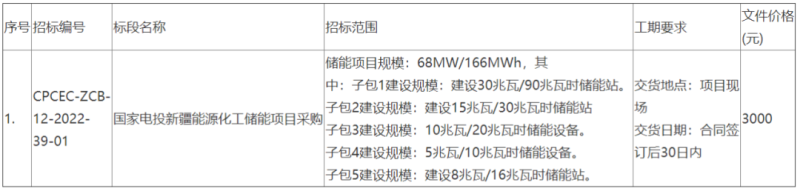 中國(guó)儲(chǔ)能網(wǎng)訊:國(guó)家電投集團(tuán)新疆能源化工有限責(zé)任公司儲(chǔ)能項(xiàng)目采購(gòu)招標(biāo)公告