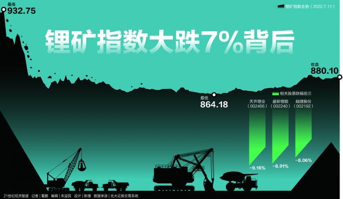 7月11日,鋰礦指數(shù)盤中大跌超7%,天齊鋰業(yè)(002466.SZ)、盛新鋰能(002240.SZ)等多只成分股觸及跌停,這是本輪反彈以來,鋰礦股首次比較“像樣”的系統(tǒng)性回調(diào)。