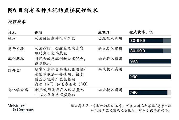 目前僅有吸附法DLE技術(shù)在阿根廷和中國(guó)投入商用。如果DLE技術(shù)能得到大規(guī)模推廣,并應(yīng)用于各種鹵水項(xiàng)目,將能通過(guò)提高采收率、降低運(yùn)營(yíng)成本等優(yōu)化現(xiàn)有產(chǎn)能,同時(shí)改善項(xiàng)目的環(huán)境影響(見(jiàn)圖6)。