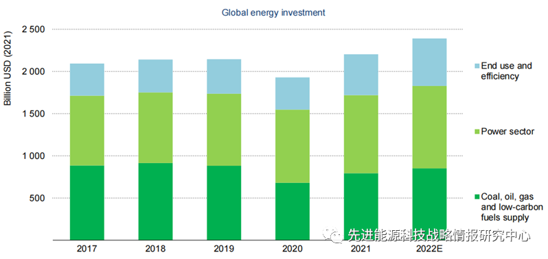 圖1 2017-2022年世界能源投資總額變化趨勢(單位:十億美元)