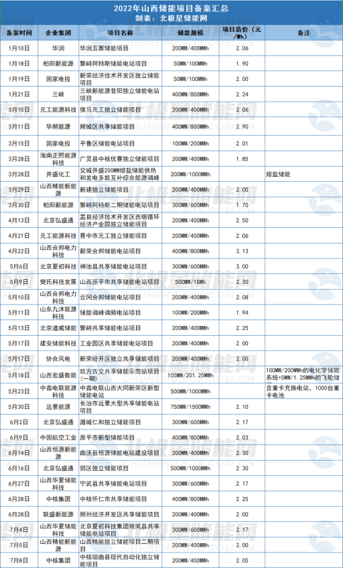 而據(jù)北極星儲能網(wǎng)統(tǒng)計,目前這些僅僅是山西儲能的冰山一角。