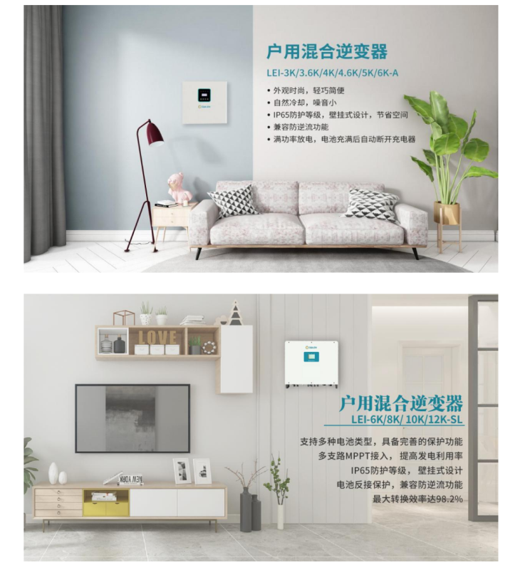 戶用混合逆變器。隨著國家財政補貼,普通家庭對于光伏的投資意識也越來越強,主要針對家庭儲能設計了3~12kW的單相混合逆變器及10~20kW三相混合逆變器。冠隆電力戶用混合逆變器機身更輕盈,顏值在線,便于安裝維護;具有電池反接保護,兼容放逆流功能,安全可靠同時具有較好的轉換效率,讓一樣的屋頂,有不一樣的收益。全心全意為客戶打造綠色清潔電力,高品質(zhì),讓您用電更安心。