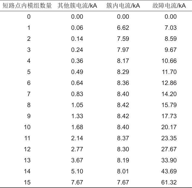 表2 短路點內(nèi)不同模組數(shù)量各處電流理論計算值