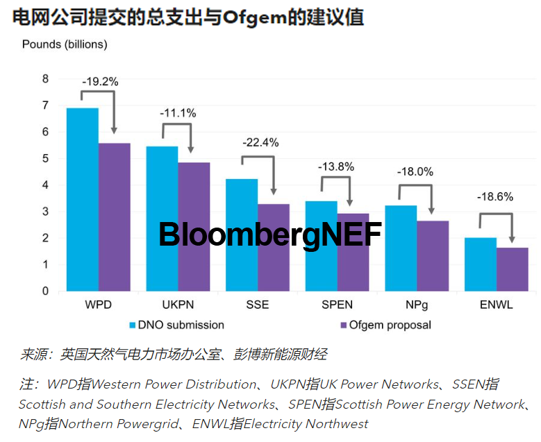 Ofgem提議,將允許的股本回報(bào)率從上個(gè)監(jiān)管期的6.0%削減至4.75%,同時(shí)還將DNO提議的總支出從252億英鎊削減至209億英鎊(249億美元),降幅達(dá)17%。
