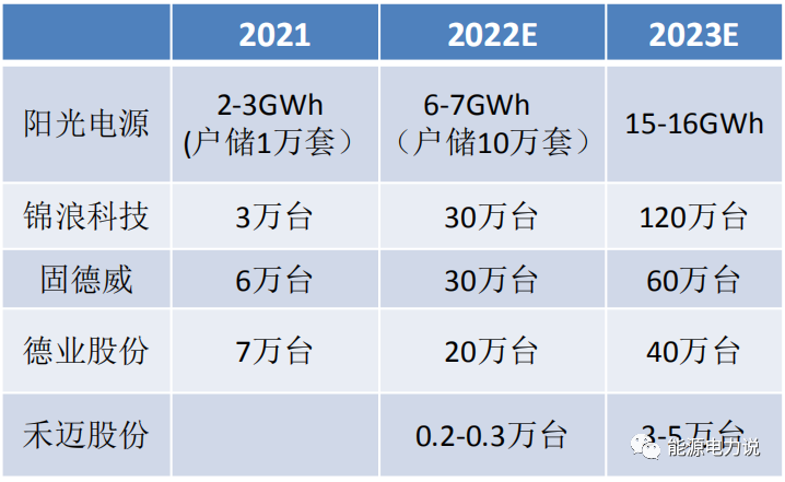 2022年年初以來(lái),戶(hù)儲(chǔ)需求旺盛,國(guó)產(chǎn)逆變器廠(chǎng)商出貨持續(xù)高增,我們預(yù)計(jì)2022年國(guó)產(chǎn)逆變器廠(chǎng)商出貨實(shí)現(xiàn)翻倍以上增長(zhǎng),2022年我們預(yù)計(jì)陽(yáng)光出貨6-7GWh,實(shí)現(xiàn)翻倍增長(zhǎng),其中戶(hù)儲(chǔ)有望從2021年1萬(wàn)套增至10萬(wàn)套;錦浪出貨30萬(wàn)臺(tái),實(shí)現(xiàn)翻9-10倍增長(zhǎng);固德威出貨30萬(wàn)臺(tái),實(shí)現(xiàn)翻4-5倍增長(zhǎng),德業(yè)出貨20萬(wàn)臺(tái),實(shí)現(xiàn)翻2-3倍增長(zhǎng)。