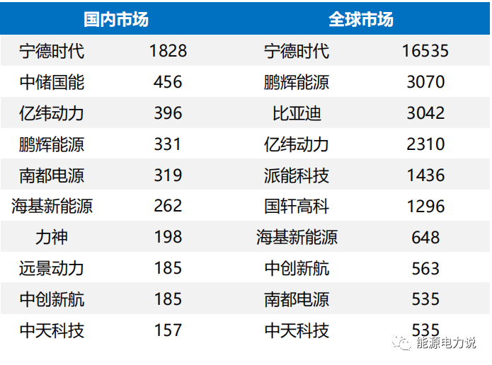 2021年國(guó)內(nèi)及全球市場(chǎng)儲(chǔ)能電池出貨情況(MWh)