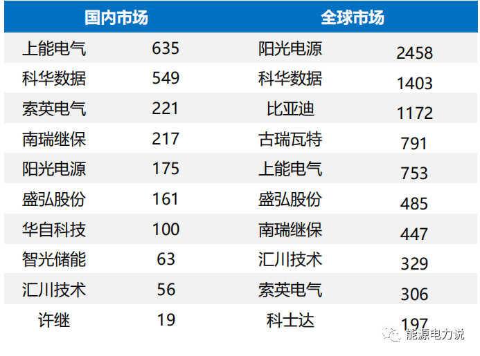 2021年國(guó)內(nèi)及全球市場(chǎng)儲(chǔ)能逆變器出貨情況(MW)