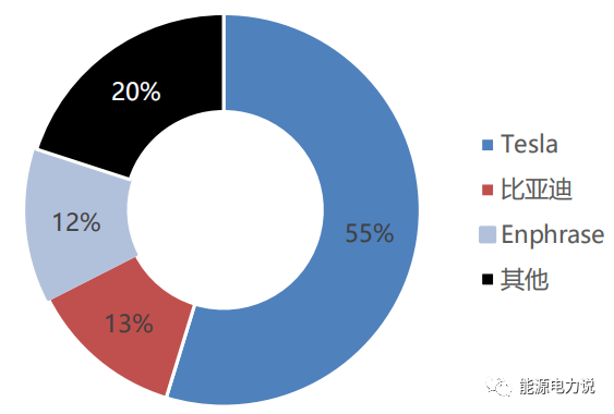 美國(guó)戶(hù)儲(chǔ)行業(yè)集中度極高,特斯拉占據(jù)半壁江山。