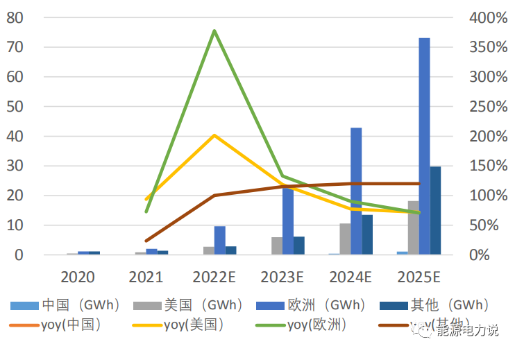 各國(guó)家或地區(qū)戶(hù)用儲(chǔ)裝機(jī)預(yù)測(cè)
