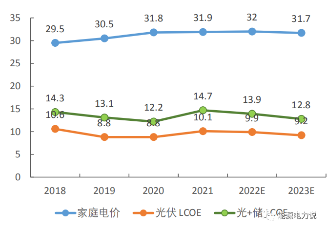 光儲(chǔ)LCOE與家庭用電成本差距拉大,戶(hù)用光儲(chǔ)經(jīng)濟(jì)性凸顯。