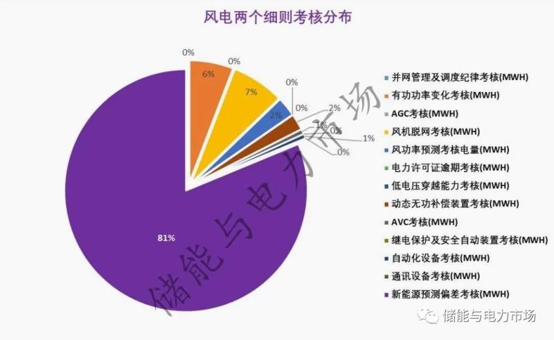 ●風(fēng)電兩個細(xì)則考核電量總計(jì)221858MWh,月均考核36976MWh。新能源預(yù)測偏差、有功功率變化、動態(tài)無功補(bǔ)償裝置考核排名前三,考核占比分別為78%,6%,2%。