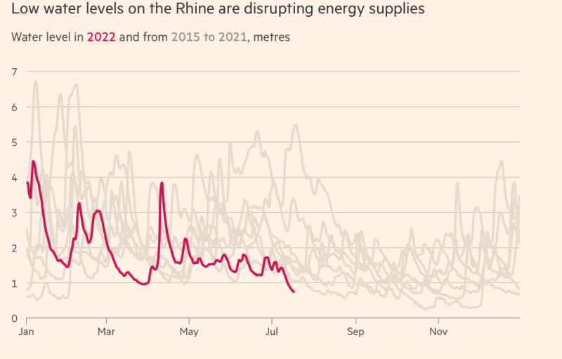 水位下降也令部分燃料運輸船無法行駛。德國萊茵河本是將煤炭從鹿特丹運到德國南部最便宜、最簡單的方式,但由于水位下降太快,使德國部分火電廠的燃料供應(yīng)受到影響。
