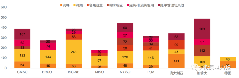 調(diào)頻和調(diào)峰是國外電池儲(chǔ)能的主要應(yīng)用場景(美元/kW/年)