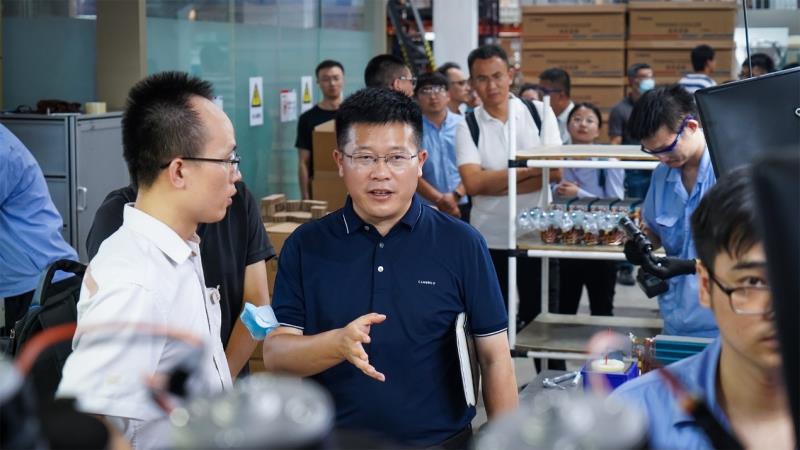 交流結束后,專家組在萬勇等領導的陪同下,參觀了生產(chǎn)車間、展廳、環(huán)境實驗室等。