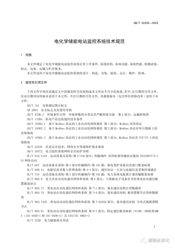 國(guó)家標(biāo)準(zhǔn)《電化學(xué)儲(chǔ)能電站監(jiān)控系統(tǒng)技術(shù)規(guī)范》征求意見(jiàn)