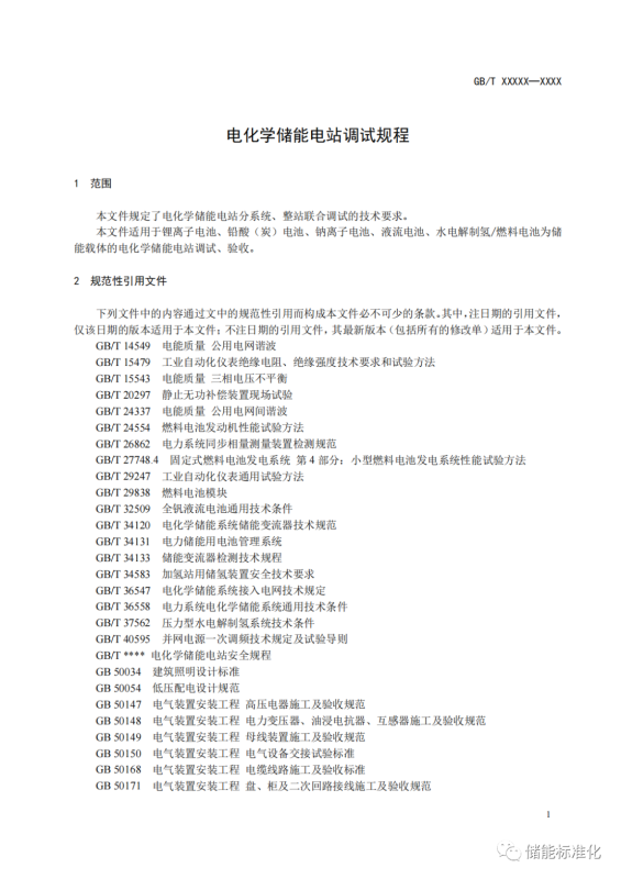國(guó)家標(biāo)準(zhǔn)《電化學(xué)儲(chǔ)能電站調(diào)試規(guī)程》征求意見(jiàn)