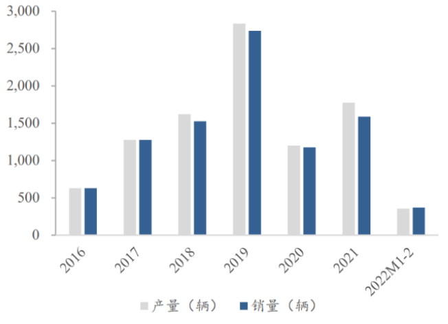 圖3 我國(guó)氫能源車產(chǎn)量銷量情況